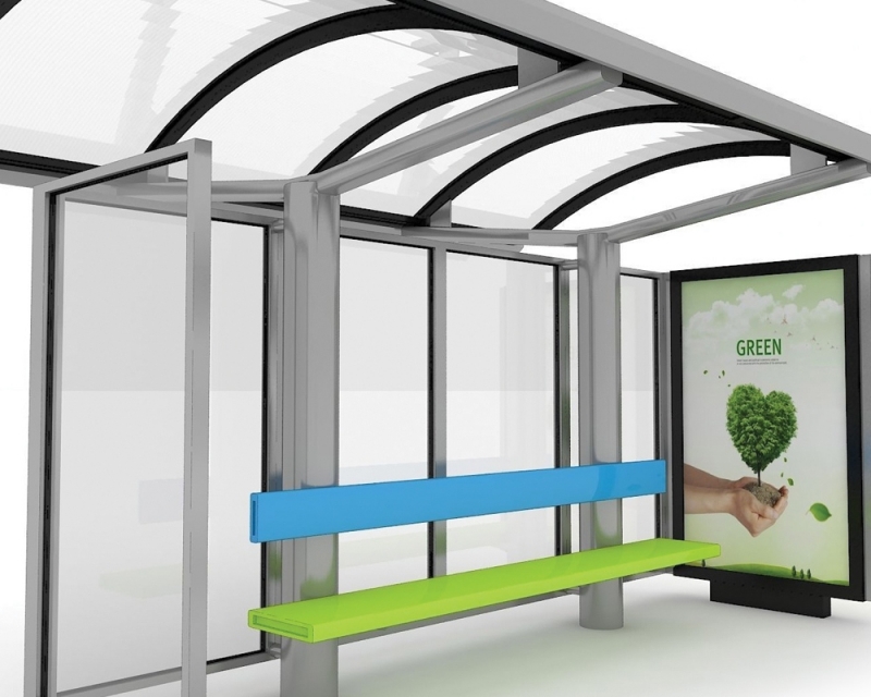 İnsanların toplu ulaşım araçlarını beklediği güvenli ve modern görünümlü otobüs durakları..